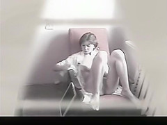 Description: Woman spied in sofa making up her face and painting her nails. After doing that that babe lightens and smokes a cigar.