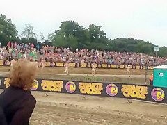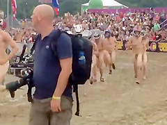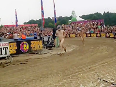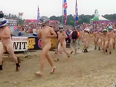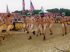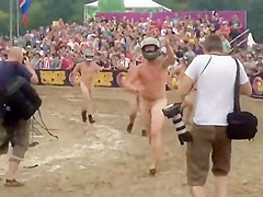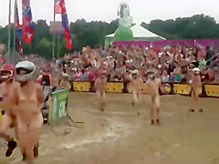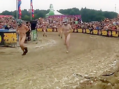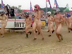 I wouldn't be surprised if some of u resolve to become nudists after seeing this laughable in nature's garb race, with no thing but bike helmets on. Mixed crowd of bare people hid their faces and they ran a mud race in front of the full stadium. If u can't beat 'em, join 'em.