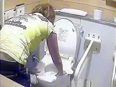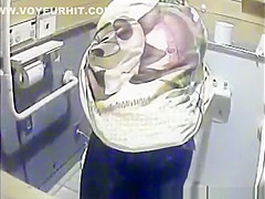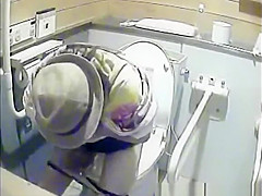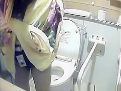 Gals peeing in dormitory lavatory