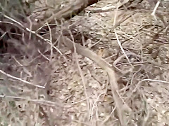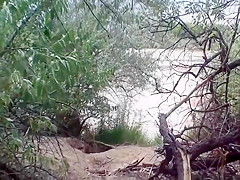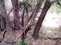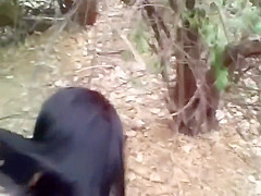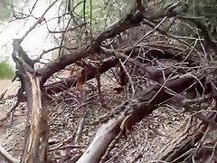 I wonder, if a chupacabra or a yeti lurked out of the forest, would this guy still be filming that strap peeking upwards from her wazoo crack or would this guy switch to checking out the exotic unseen beast? One way or some other, that babe is obviously sexually excited sufficiently so that guy probably could have drilled her out there in the wild.