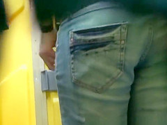 Woman pulls jeans panties and pees