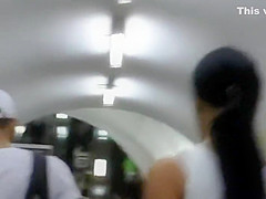 I've started filming this barbie doll as pretty soon as that babe rushed in front of me. This Babe wore that beige costume with no visible bro and I indeed hoped to watch a bit of sideboob, but then I saw smth much greater amount interesting. This Babe wasn't wearing any underclothing and up her petticoat, I saw her stripped wazoo and fur pie.