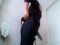 Dark Brown peeing in public latrine
