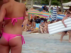 Hawt beauty was playing water tennis with her boyfriend and this babe even needed his assist to tie up that hot pink bikini at one point but then this babe proceeded to fix it up and when this babe tugged it up, a large pale tan line got show on her enchanting bubbly gazoo. That Babe tried hard to conceal it afterward.