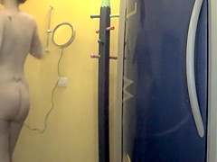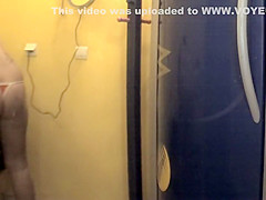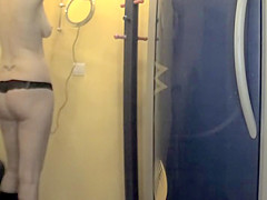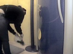 This pumped up playgirl is working on a fitness convention stand and u'll love her broad shoulders and diminutive firm booty that this babe proudly shows off in her darksome tights. Voyeur was there to videotape it as this guy walks by.