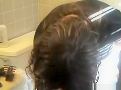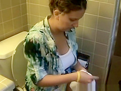 Large boobs woman filming her pees