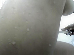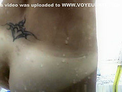 Tattooed worthwhile butt woman in shower cabin