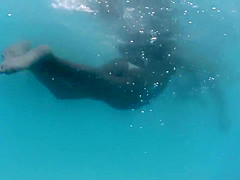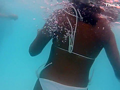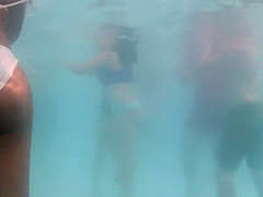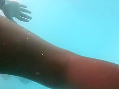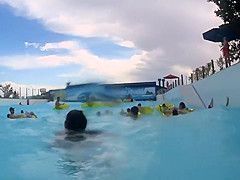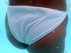 I took my underwater camera with me in the swimming pool that had artificial waves. It was a sexy experience. There was a smokin' hawt cutie in white bikini swimming near me and her gazoo and legs moved so elegantly in the water. I managed to acquire very close to her swimming booty.