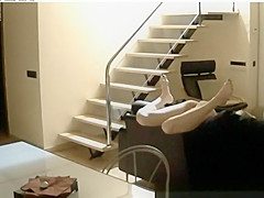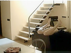 Constricted body sweetheart with fine milk cans and hairless slit nude in the kitchen eating smth.