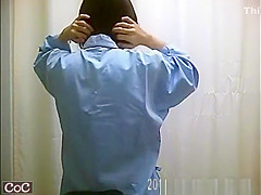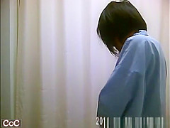Petite love bubbles oriental babes caught by concealed spy camera taking off their raiment and putting a robe in doctor's office change room.