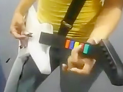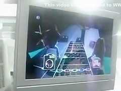 A large boobed guitar hero player