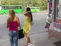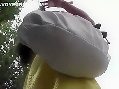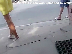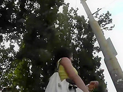 Tanned sweetheart wore an all yellow petticoat and it was impossible to miss her whilst this babe waited for the bus. Her handsome looks have attracted the voyeur so that guy came from behind to check out that inviting upskirt. Check out what kind of an arse that guy discovered in there.