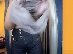 Corpulent large zeppelins woman with hairless cunt caught in solarium room undressing previous to tanning session and dressing back when session finished.