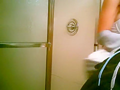 College legal age teenager spied in shower room washing her body