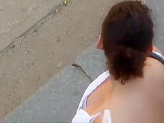 Looking into the neckline of a marvelous woman on the street.