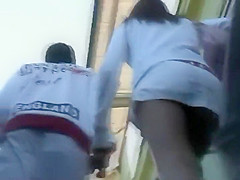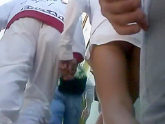 After careful inspection of an upskirt that this voyeur brought us, we can safely say that her boyfriend can be proud of the fact this chab is nailing such a hot cutie. They were holding hands and walking and a voyeur followed 'em throughout the street until this chab saw her admirable wazoo.