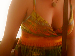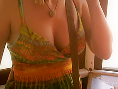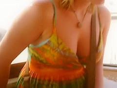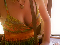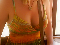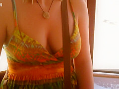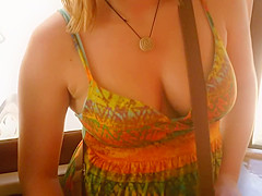 When I watch such open cleavage and ravishing natural bumpers, I just can't stop looking. I'm likewise cheerful to be able to share what I saw. That Babe clearly didn't bother with wearing a brassiere on this hawt summer day and that open costume gives us ideal downblouse look on her large mambos.