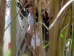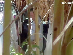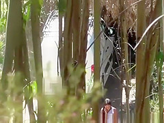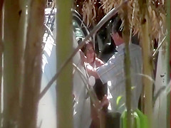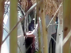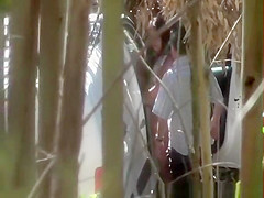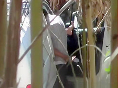 Voyeur hidden in the bushes secretly films prostitute blowing client's dong and having her vagina screwed in his car.