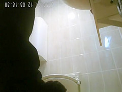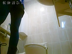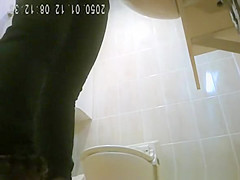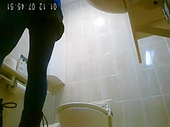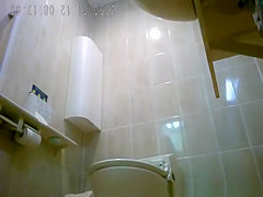 Description: Asiatic sweethearts spied in public WC peeing and cleaning their wet cracks.