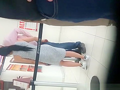 Hawt wazoo babe in constricted gray costume groped