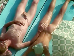 Lewd nudist gal sucks weenie from stranger boyz on the beach