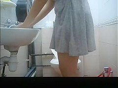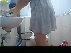 Hidden bath camera catches oriental legal age teenager seating in lavatory, pissing and cleaning her moist love tunnel.