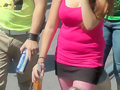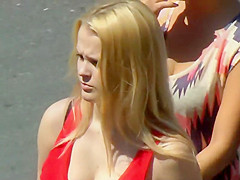 Voyeur had a priceless position on his balcony and this guy zoomed in on the crowded street underneath him, specially focusing on downblouse views of all kinds of large zeppelins. These sexy breasty gals were walking out of even knowing their cleavages are being carefully recorded.