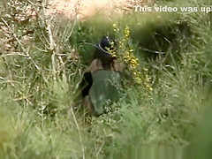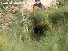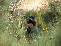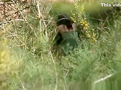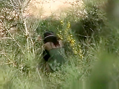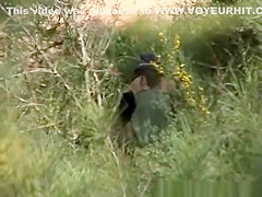 Dark Brown spied pissing in the bushes