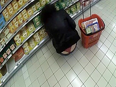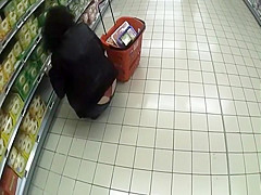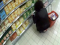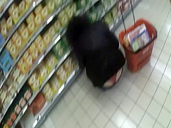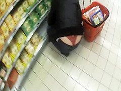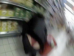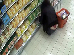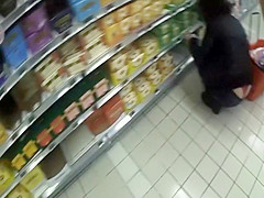 Seeing smth like this whilst shopping in the supermarket will make u forget your groceries list. This sexy woman was crouching to reach the bottom shelf and her ass cheeks got halfway disclosed, showing that this babe wears a red lace belt. I think I fell in love.