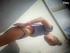 I felt actually sorry to watch that babe's leaving the beach, I just lost my prime target for raunchy imaginations but then another time, I was happy cuz I followed her to the beach cabin and spied as that babe changes to regular raiment. That Babe didn't frustrate me there, her youthful body, wet crack and wobblers looked superb.
