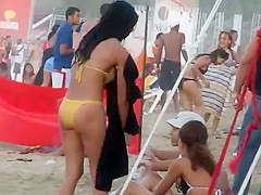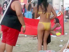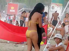 Concupiscent moist cookie of sunbathing beach gal  filmed