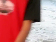 Lewd nudist gal sucks weenie from stranger boyz on the beach