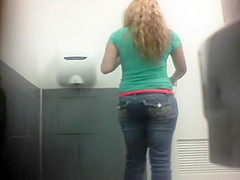 Hidden camera was placed in the college crap-house and it caught this delightsome bushy blond taking a urinate by bending over the WC bowl. When this babe squatted in that manner, her buns widen out and disclosed a constricted dark hole that some fortunate college stud is probably banging.