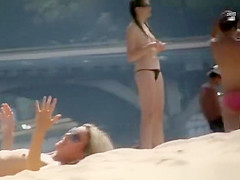 Concupiscent moist cookie of sunbathing beach gal f...