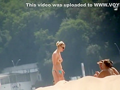 Undressed wife and topless beauties in beach