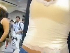 Breathtaking youthful beauties amazing unfathomable cleavage down blouse captures by voyeur