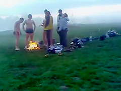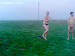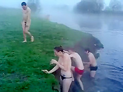 This is a large group of teenage allies that picked a rather cold weather to have a slim dip in the nearby lake. They are cold and shocked when they jumped in the water and anybody is filming 'em all the time, paying peculiar attention on cold and undressed beauties in their perky band.
