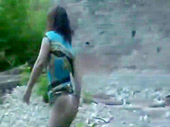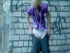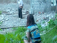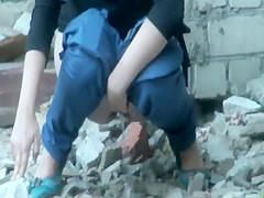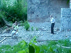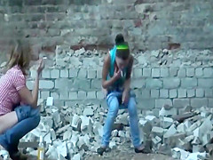 Chicks caught pissing in an old building
