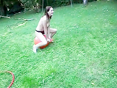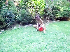 Stripped in her garden