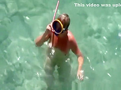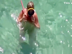 Lewd nudist gal sucks weenie from stranger boyz on the beach