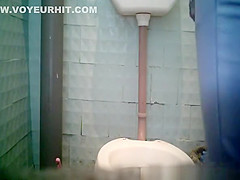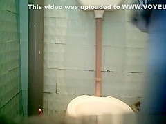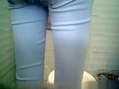 Slender gal in taut jeans panties squats to take a pee with her hirsute twat. Next its time for a woman in petticoat and nylons do her thing also.