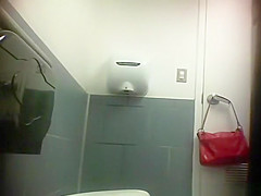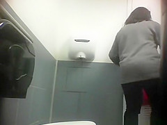 Hidden spy camera in public latrine catches woman squatting over throne-room and pissing with her bald vagina. After pissing this babe cleans her moist love tunnel.