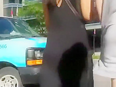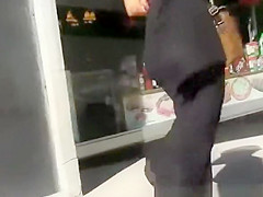 Beauty in lengthy darksome watch throughout suit valuable butt walking in the sidewalk.