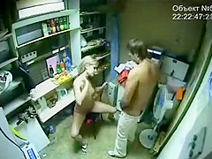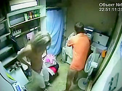 This is what happened when her boyfriend came over to her workplace and they managed to totally forget about security camera on the ceiling. They let their lascivious emotions take hold of 'em and they drilled wildly with her even getting a spunk fountain on her face.