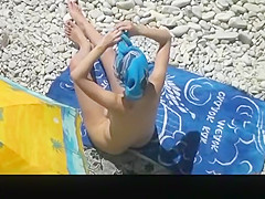 Concupiscent moist cookie of sunbathing beach gal  filmed