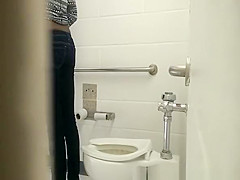 Swarthy beauty spied in public biffy peeing