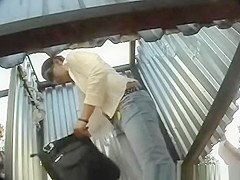Glamorous cutie changing into swimsuits in the locker room at the beach.