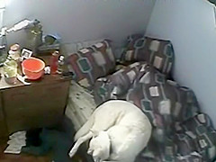 Spying in my brother's room is my top priority those days 'coz that guy is running a revolving door scheme when it comes to all kinds of sexually excited gals. My hidden camera caught him finger a fur pie of this cutie and as pretty soon as this babe was relaxed sufficiently this chab screwed her hard. Dog interrupted 'em for a bit.