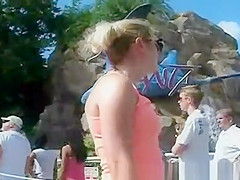 a sunny day for a water park, a lot of beauties in miniskirts to which they can hunt and make wonderful upskirts like those, as well as curiosity each upskirt is a beauty of a different nationality, so u can watch what kind of pants or belt lead in every country.
