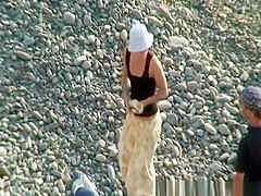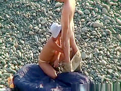 Pair arrive to the rocky beach and takes their garments. This Babe puts sunglasses and white hat on head and gives her chap a irrumation. Then its her time to acquire irrumation enjoyment as that guy eats her snatch.